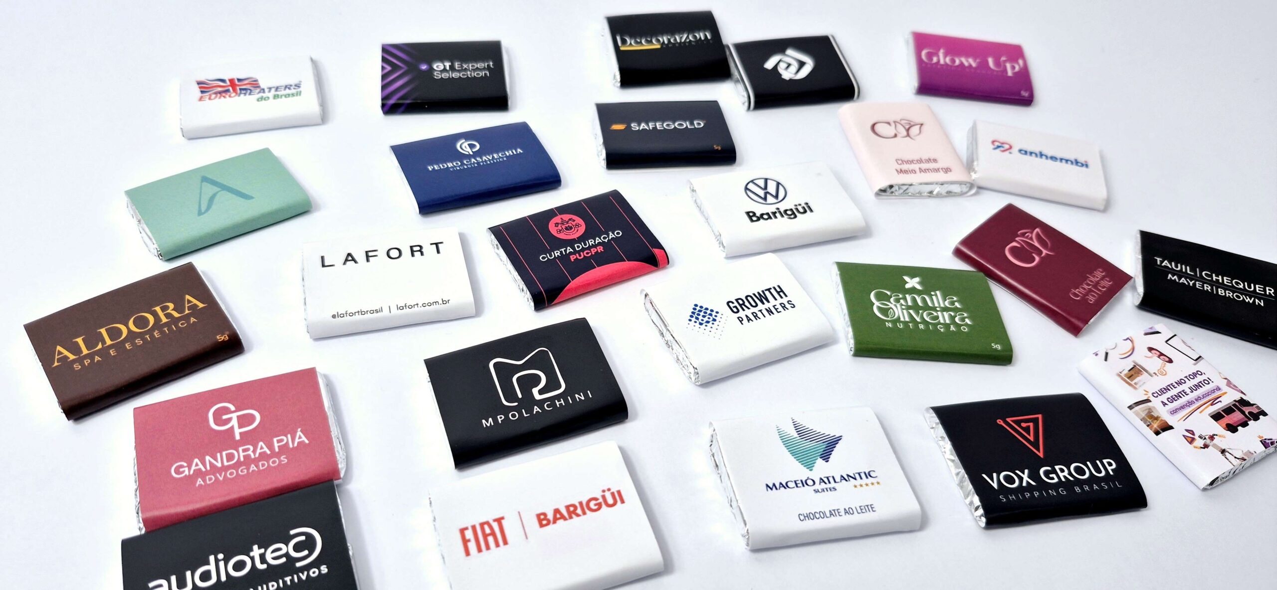 Medidas Chocolate: 3cm (comp) X 4cm (larg) X 0,3cm (alt).