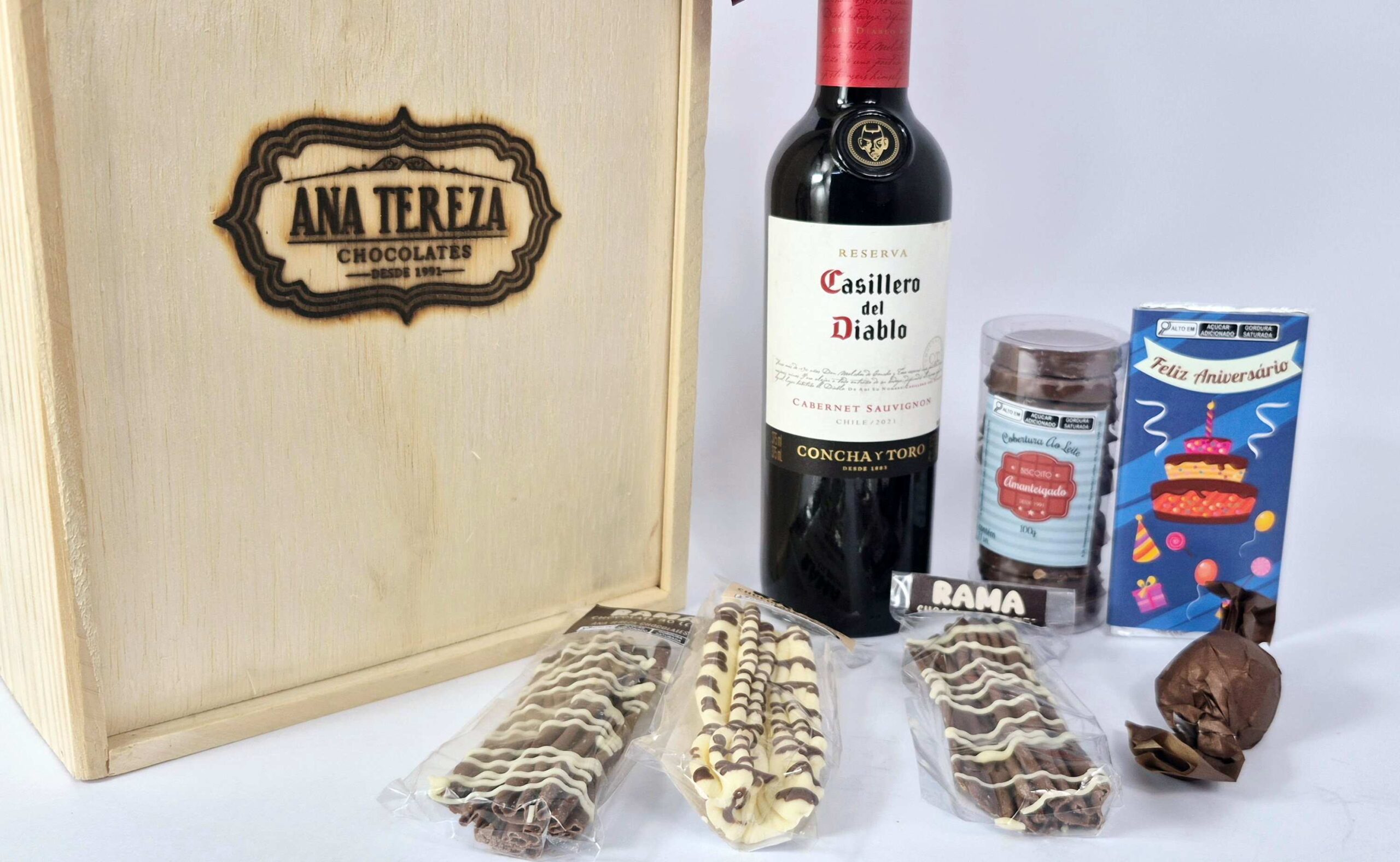 Cesta Caixa de Madeira com Vinho 375ml - 236g