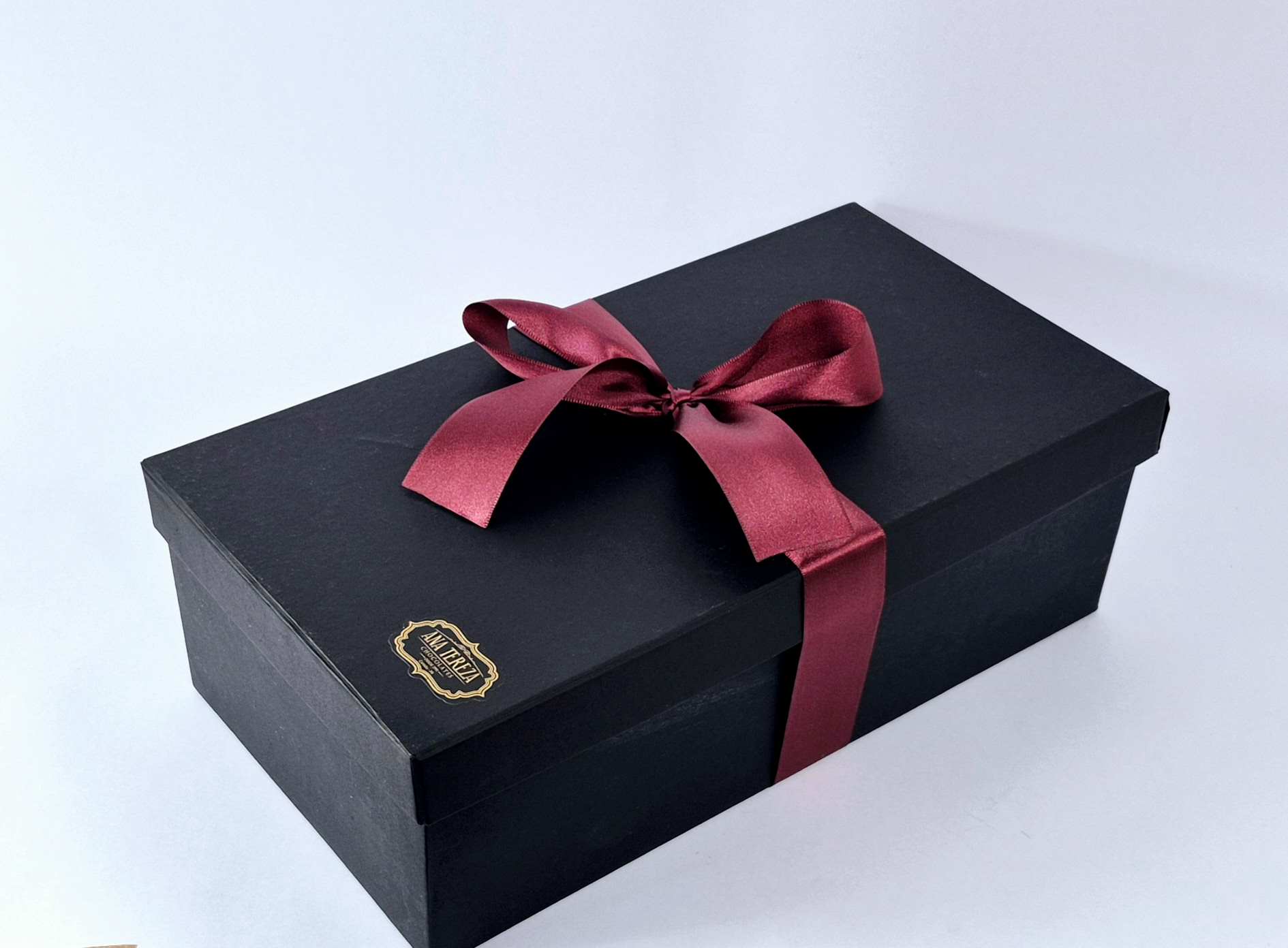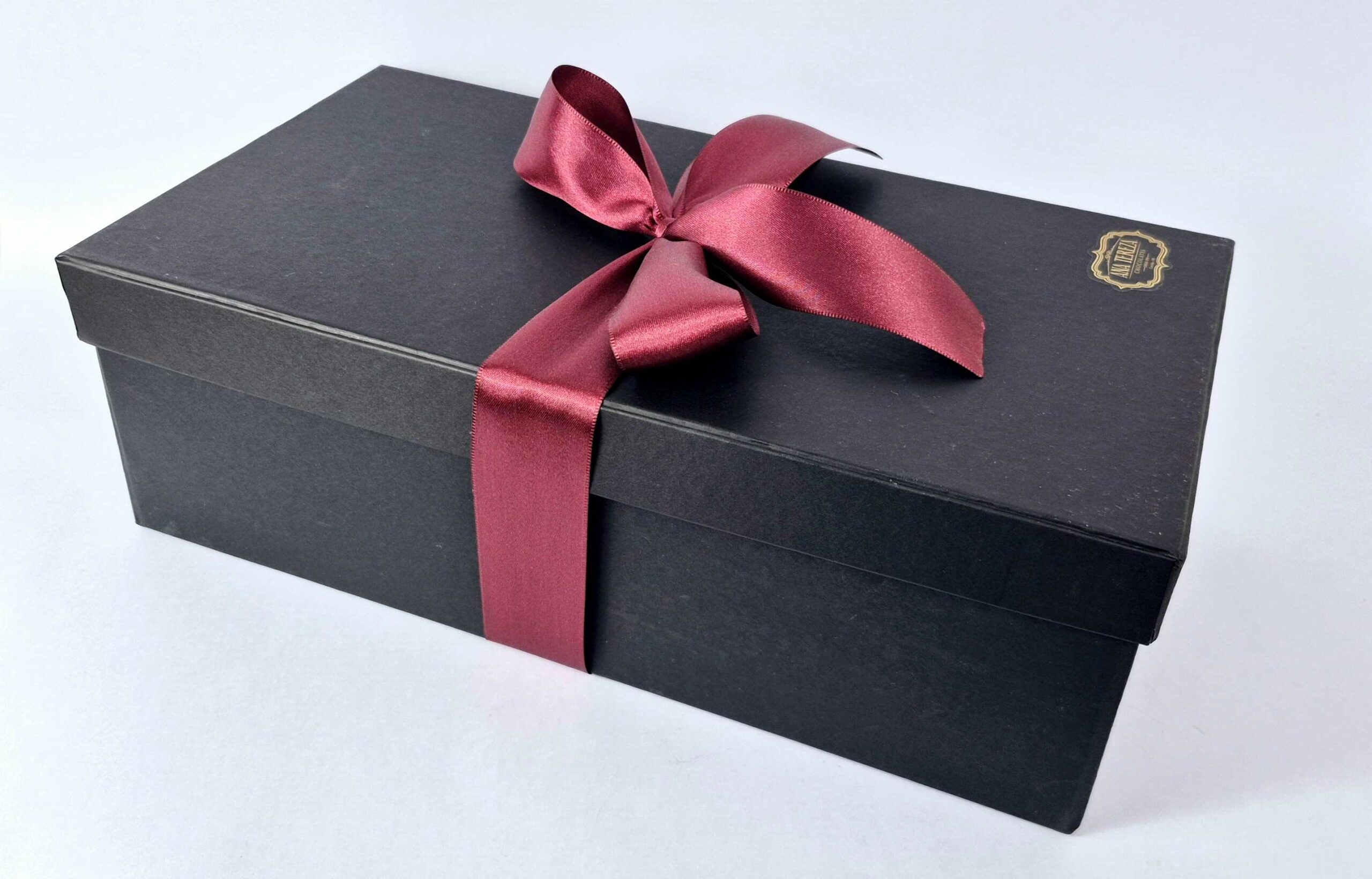 Embalagem: Caixa preta + Fita + Sacola Kraft presente