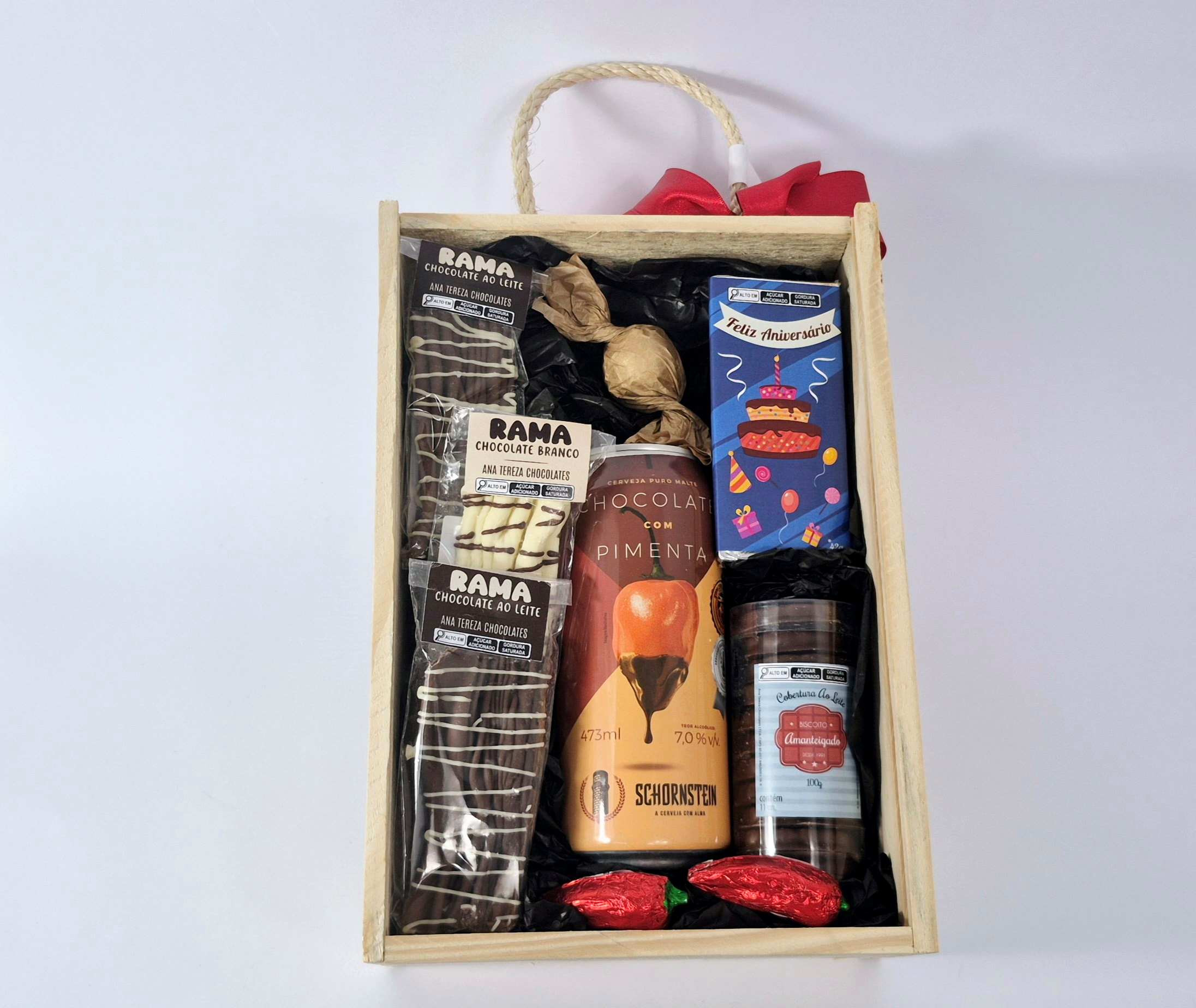 Cesta Caixa de Madeira com Cerveja 473ml - 252g